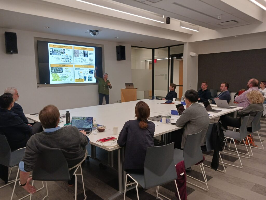 Du 31 mai au 1er juin 2025, le Massachusetts Institute of Technology (MIT) à Boston a accueilli le deuxième atelier de recherche. Organisé par le professeur Ryan et son équipe, cette réunion combinait une journée d’étude et une visite sur le terrain. Elle a réuni des chercheurs du Canada (F. Racine), des États-Unis (B. D. Ryan, B. Scheer, D. Johnson Almy III, K. Dunham, I. Golovitskaya, C. Kickert, S. P. Nogalski, A. Sevtsuk et D. Yang) et du Mexique (S. H. Herrera, A. H. Hidalgo Rasmussen et D. E. Sánchez).